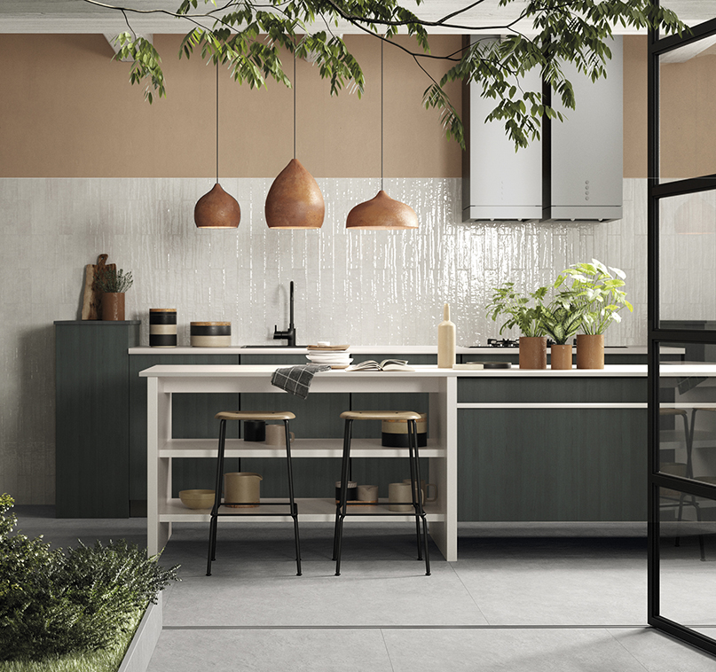 Pastorelli’s Colorful offers a long, rectangular format in porcelain. The line’s palette infuses an injection of color that will add vitality to any design. The surface structure is not flat, with undulation and also a mesh-like imprint reminiscent of fabric. The structure along with the glossy glaze plays with the light reflection, adding depth and complexity to the tile’s appeal.